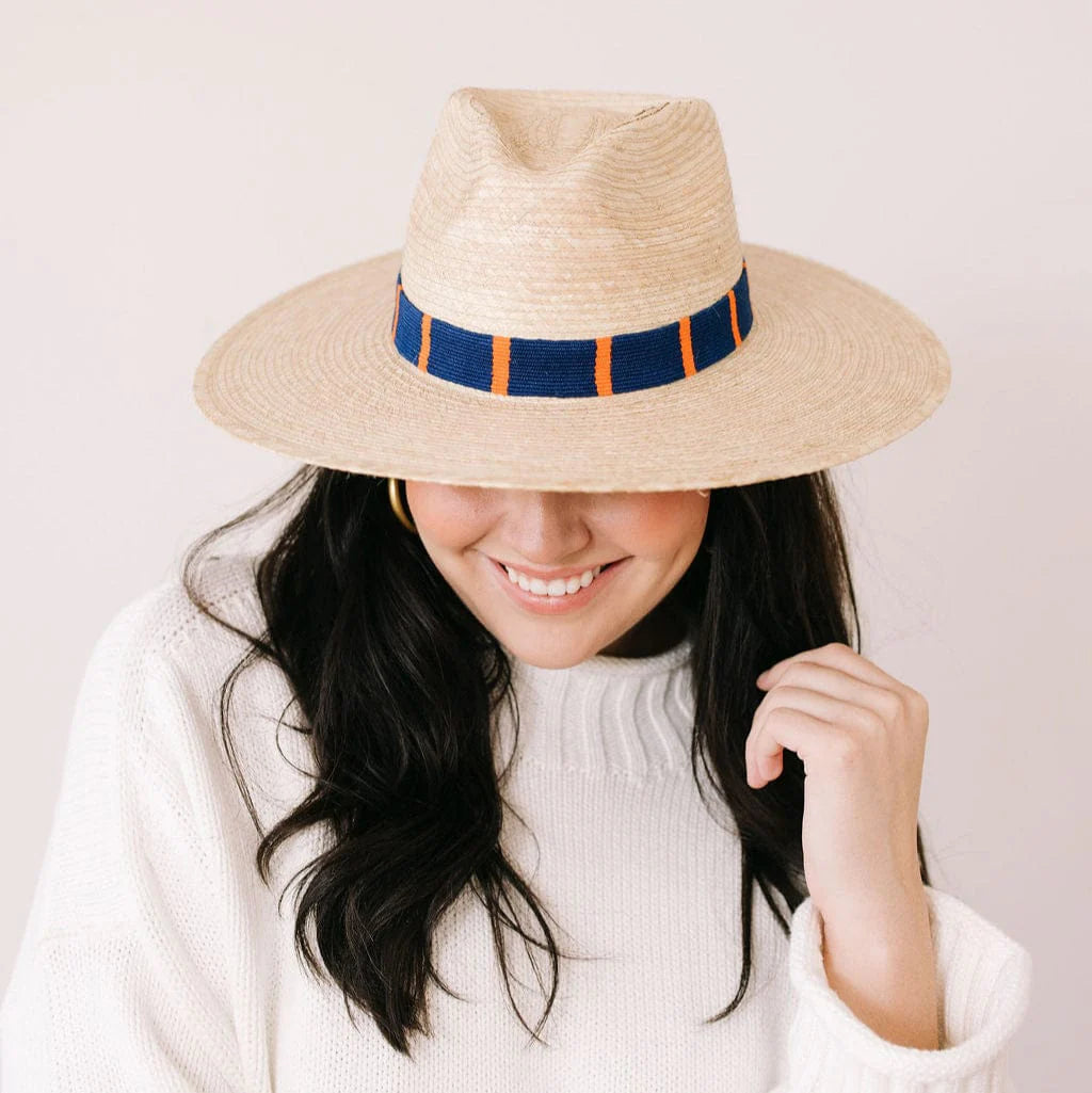 SUNSHINE TIENDA Navy and Orange Palm Hat