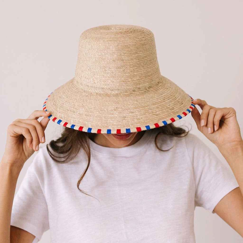 SUNSHINE TIENDA Red and Blue Palm Hat