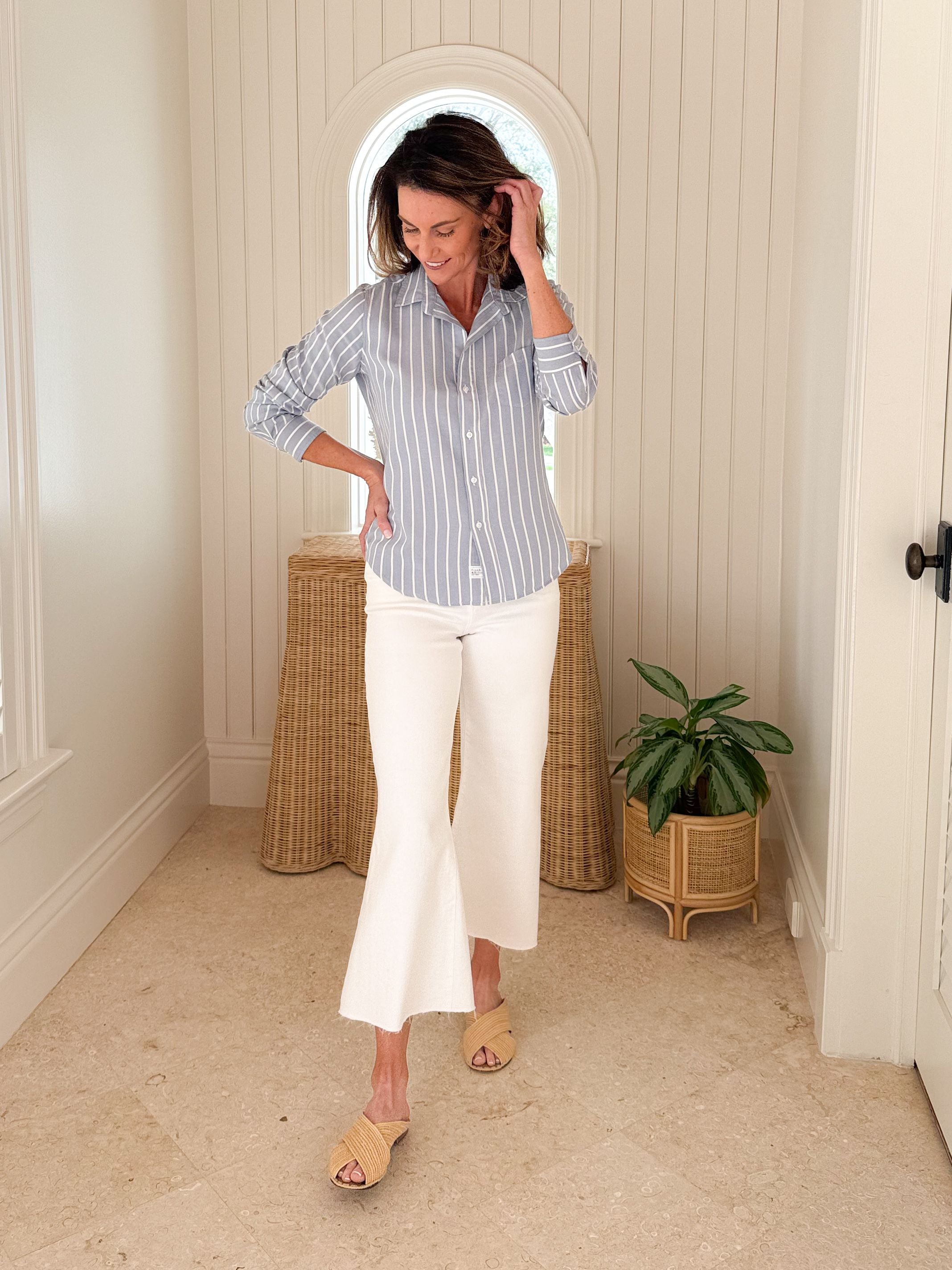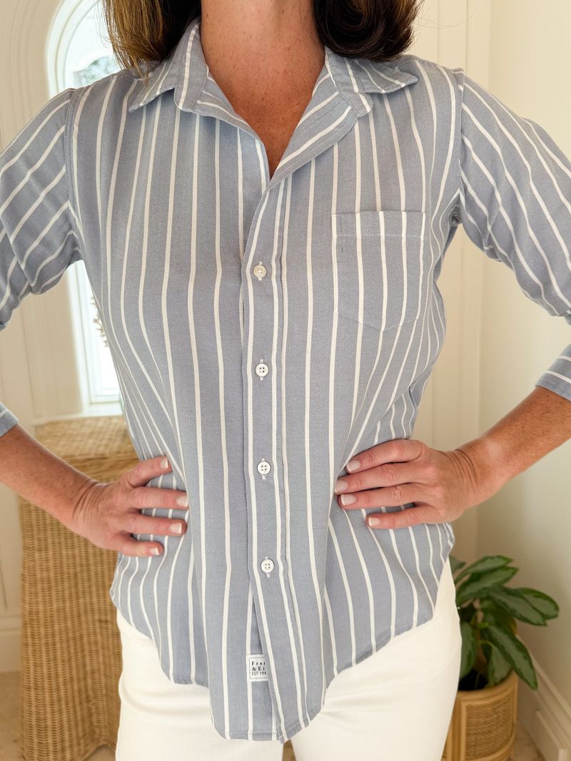 FRANK & EILEEN Barry Button Up Wide Blue Strip