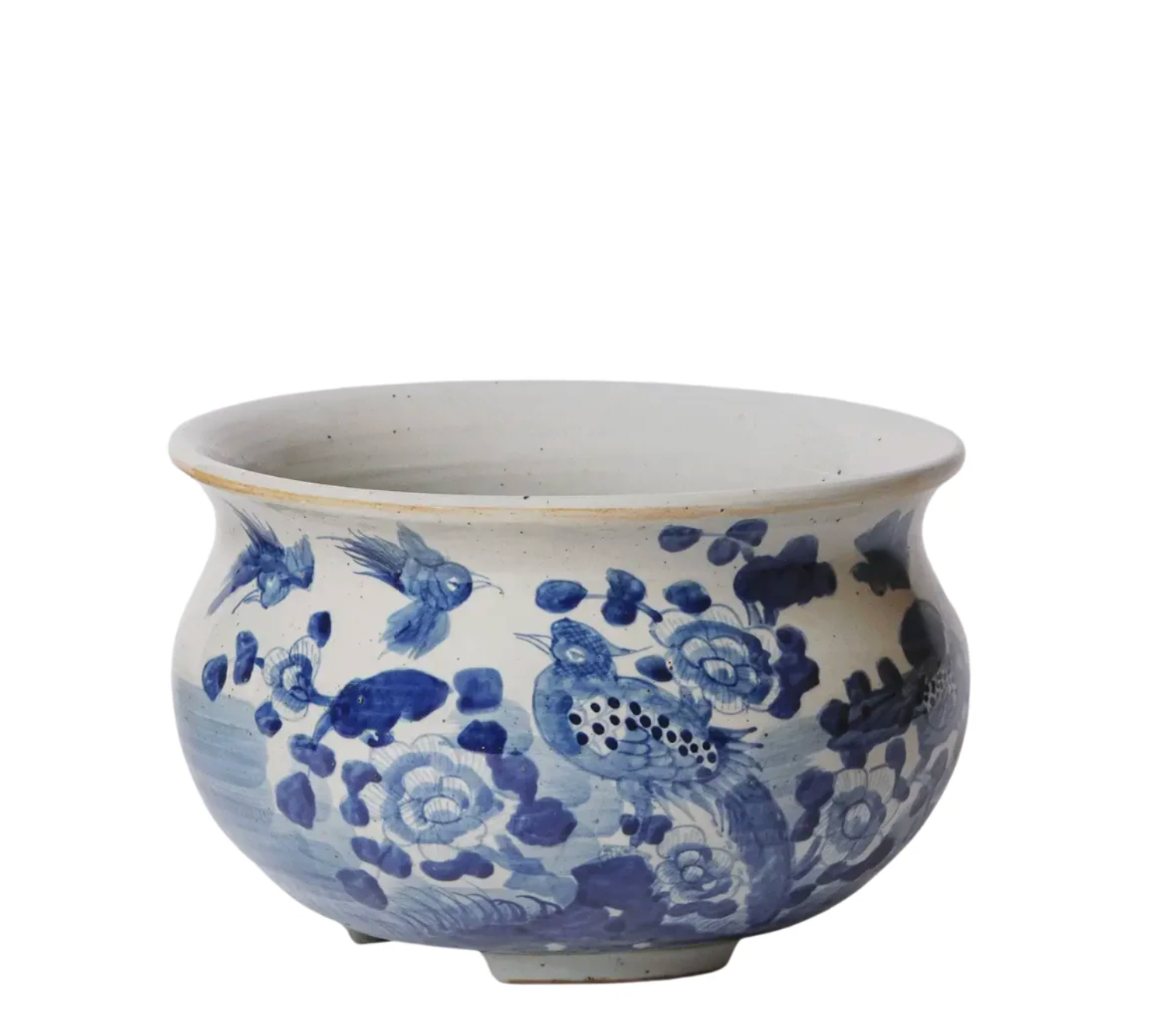 Rustic Bird And Flower Cachepot