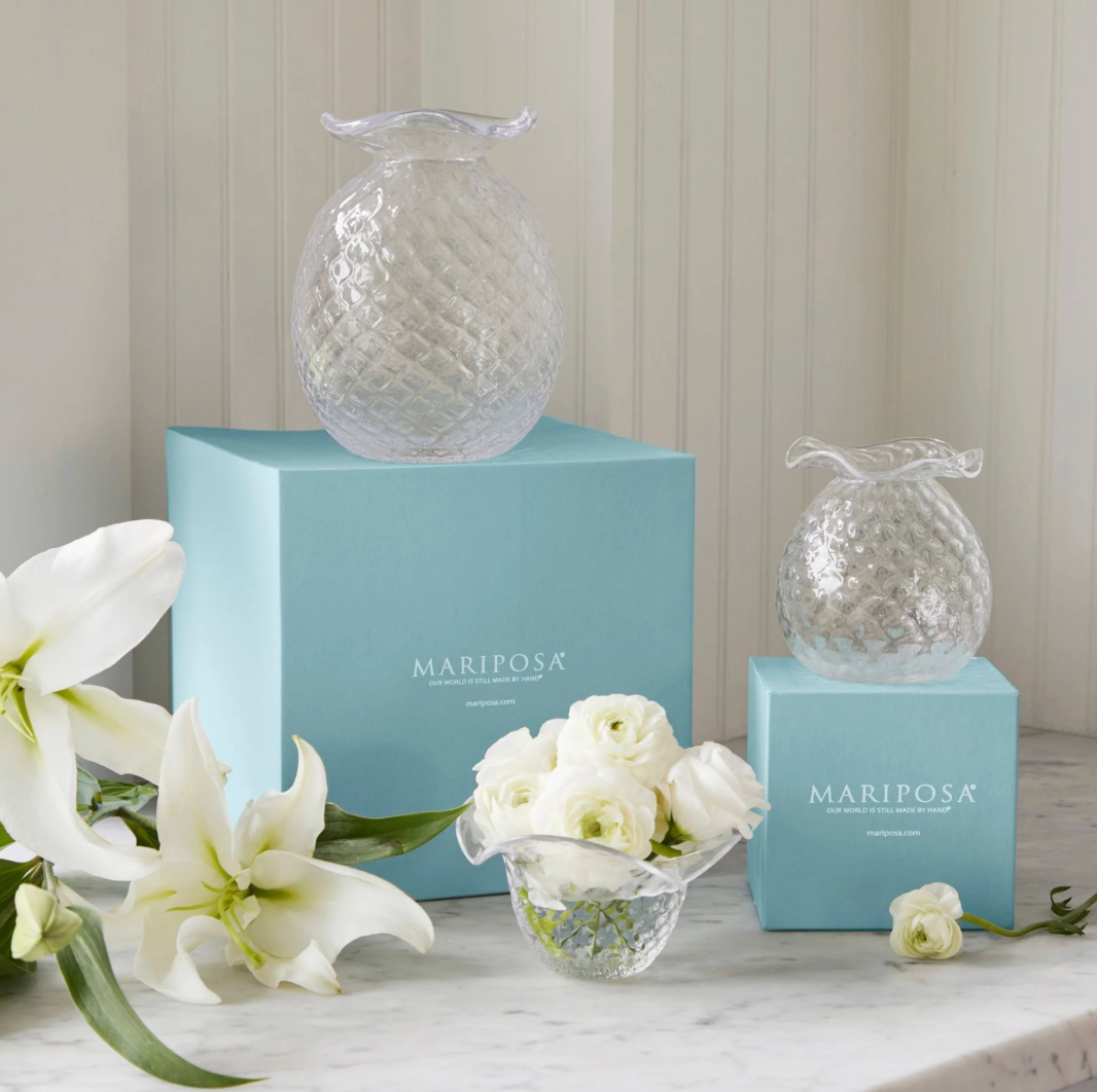 FINAL SALE Large Clear Pineapple Texture Bud Vase