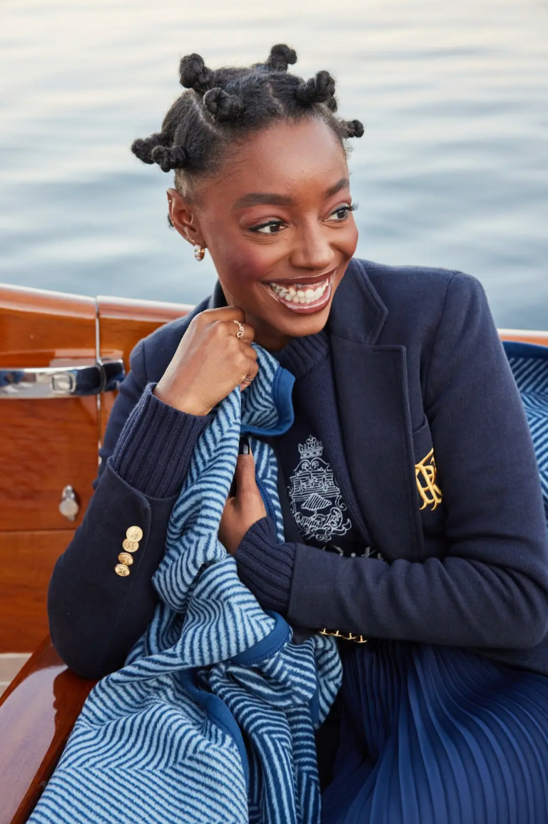 CHAPPY WRAP Harborview Herringbone Navy Midi