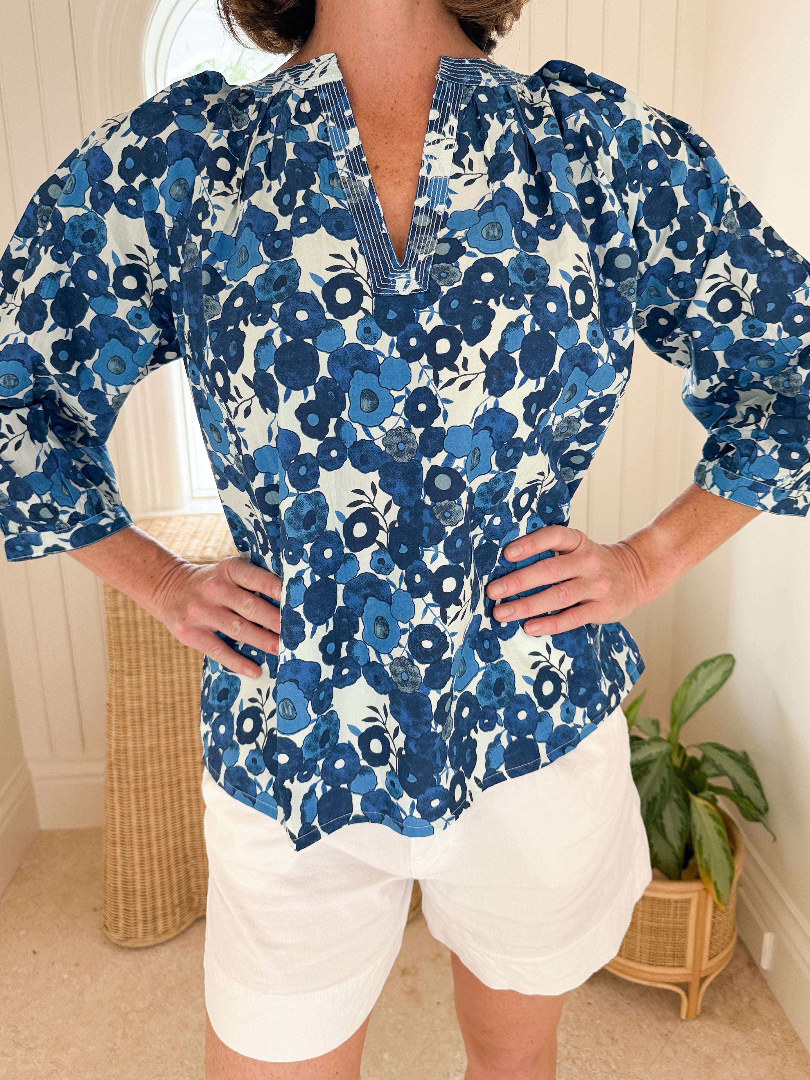 FITZROY & WILLA Sallie Ann Blouse Blue Poppy