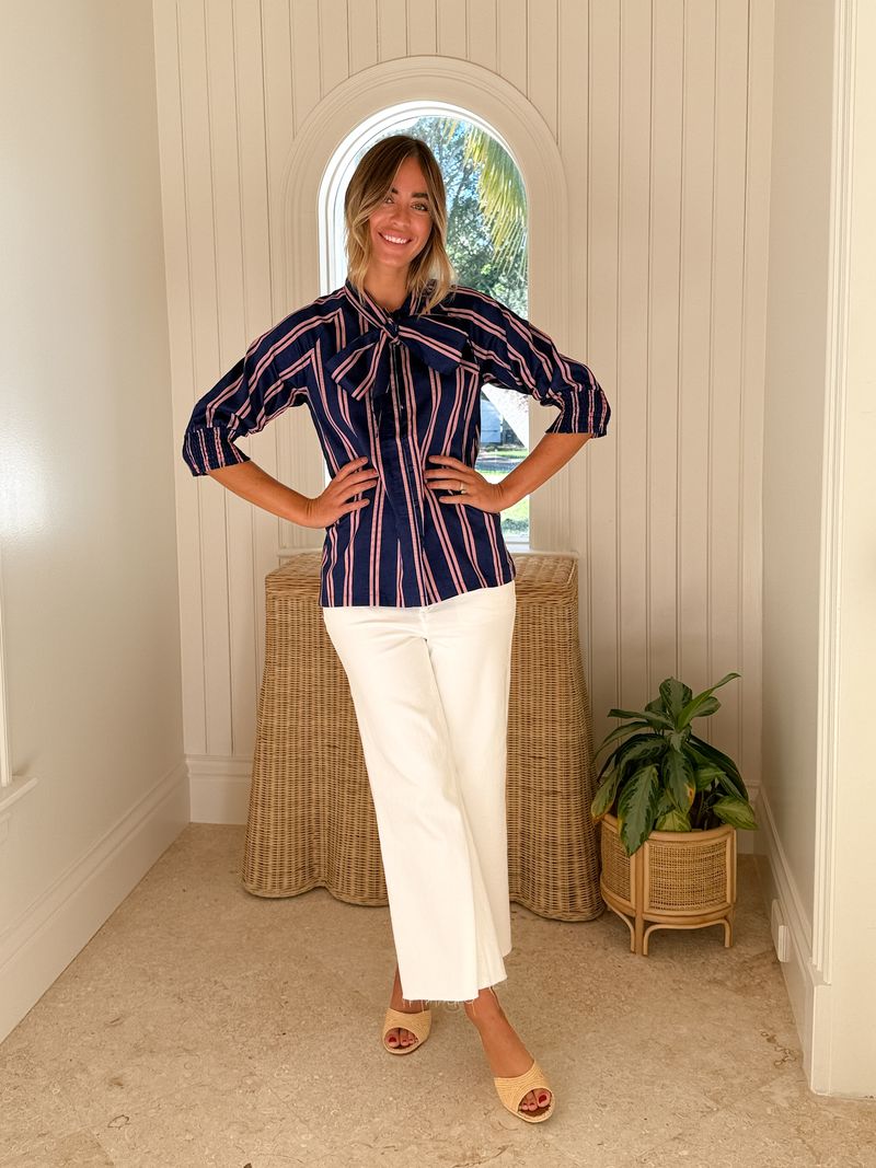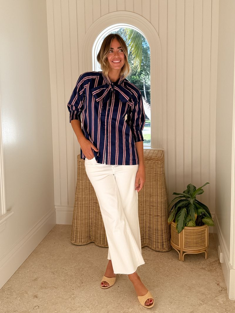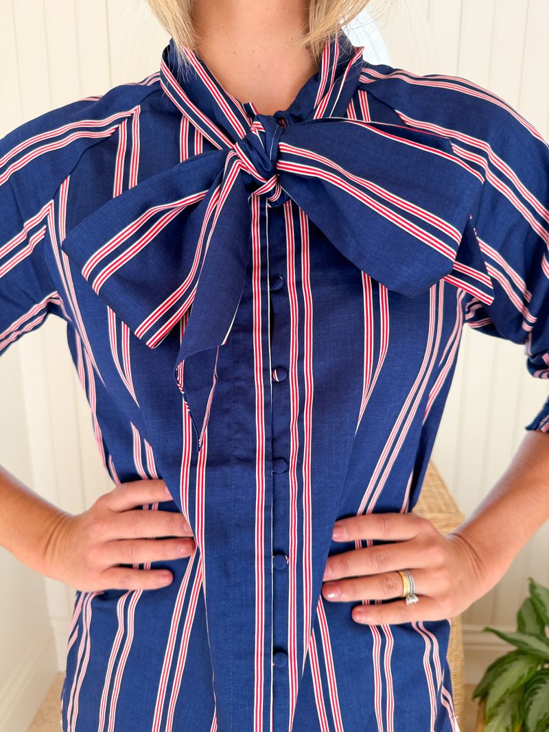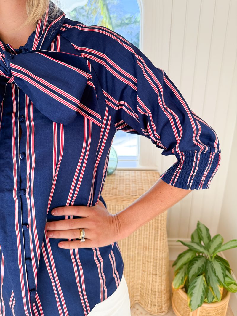 CARYN LAWN Holly Bow Top Navy w/ Red/White Stripe