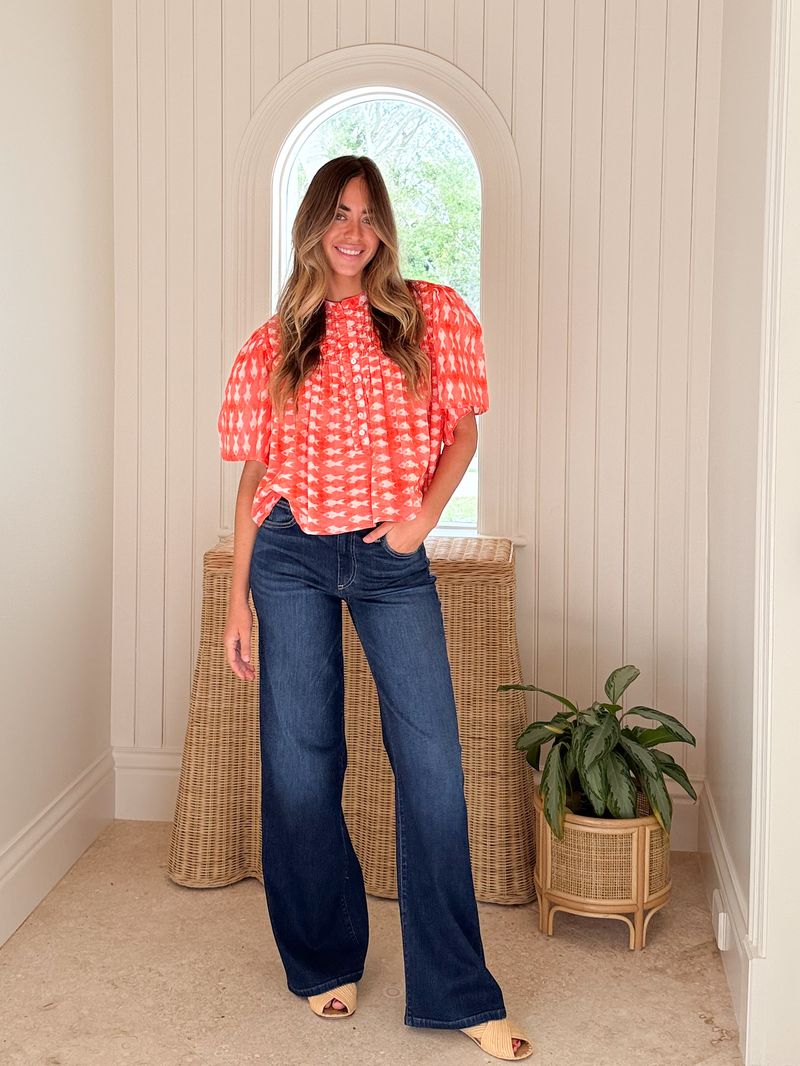 FITZROY & WILLA Sallie Ann Blouse Navy Ikat Block