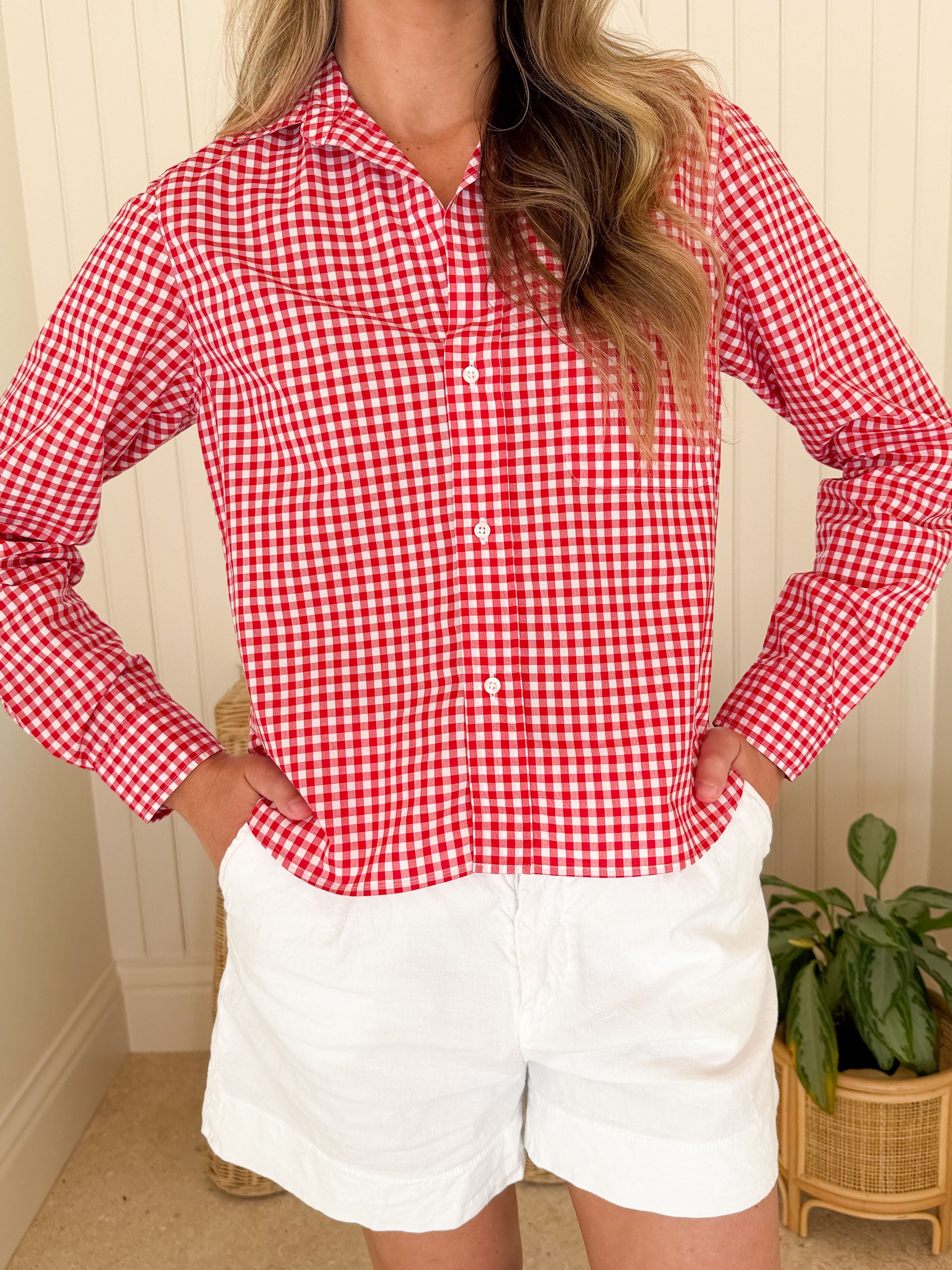 FRANK & EILEEN Silvio Untuckable Button-Up Shirt Red Gingham